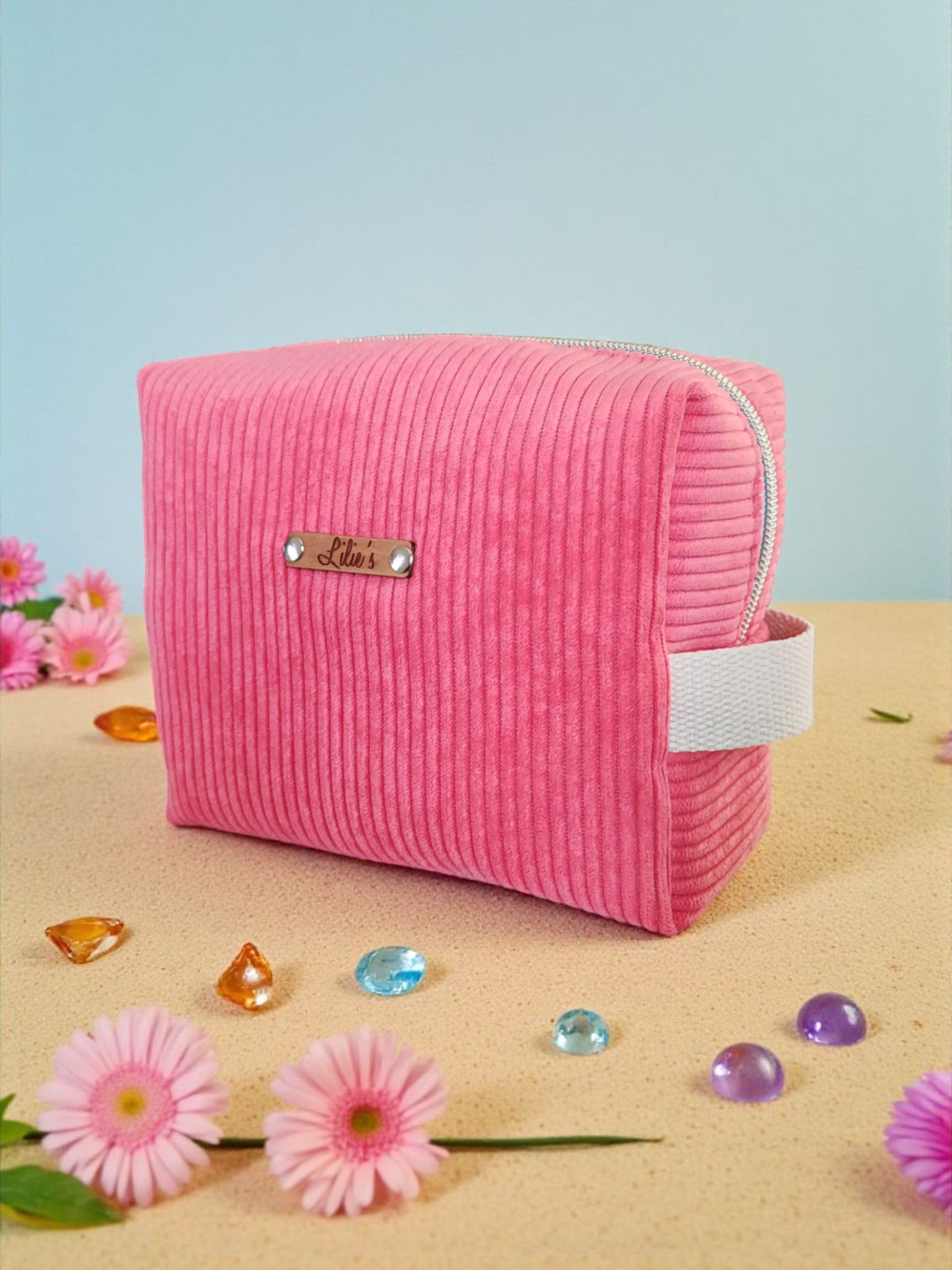Lison - La trousse de toilette en velours côtelé rose bonbon - taille S