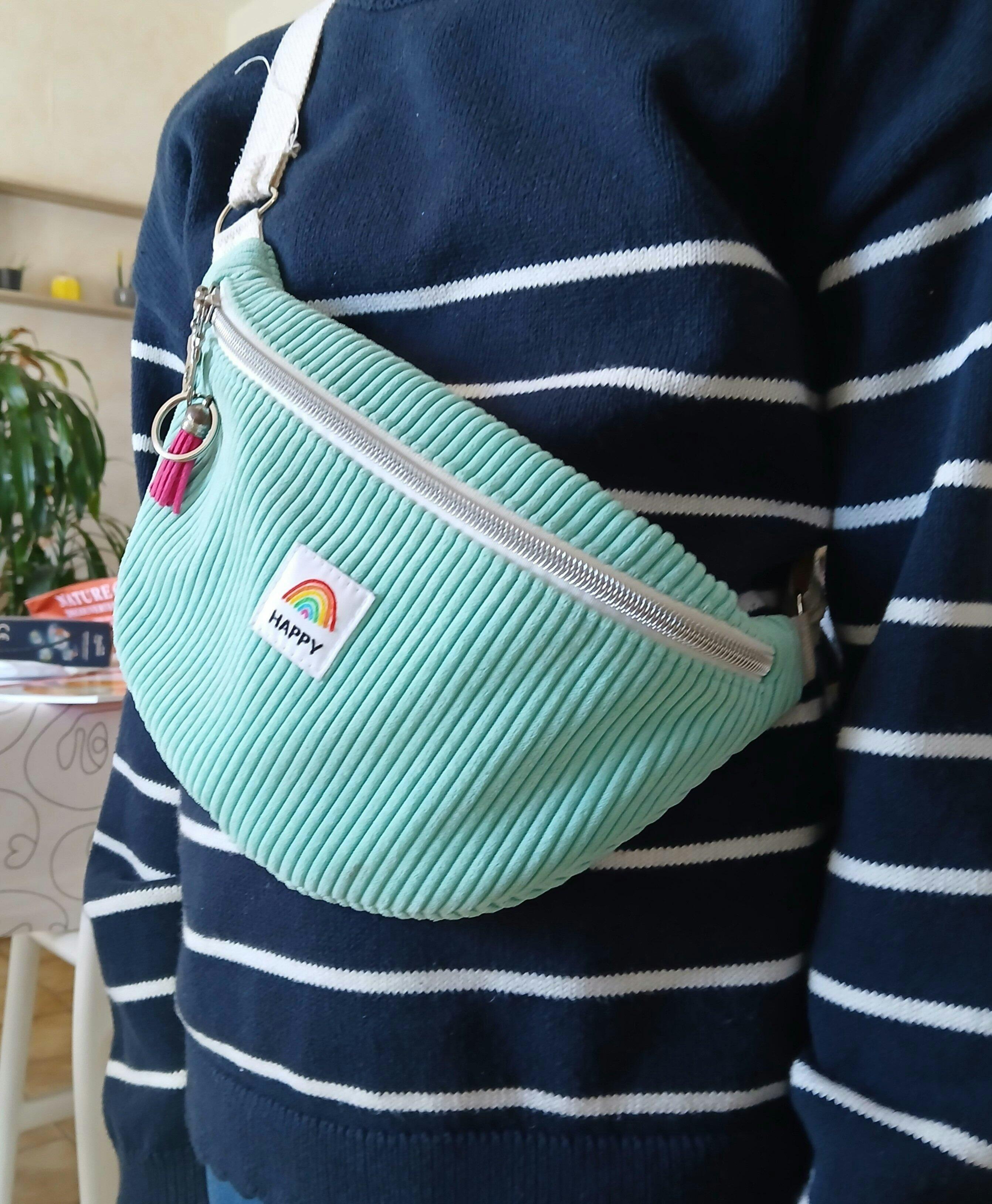 Tout en velours côtelé, cette banane se porte en bandoulière et deviendra vite l'accessoire préféré de votre enfant !